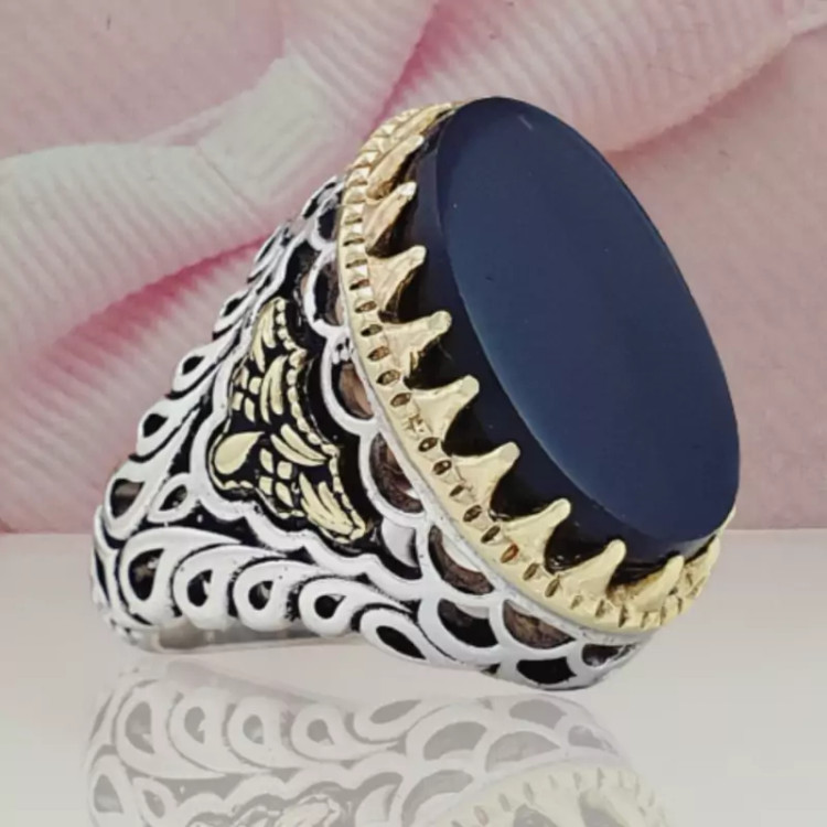 انگشتر مردانه عقیق سیاه اصلی و معدنی