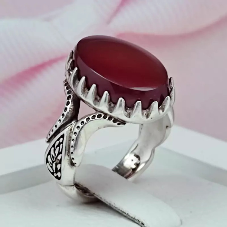 انگشتر مردانه عقیق سرخ خراسان تیره