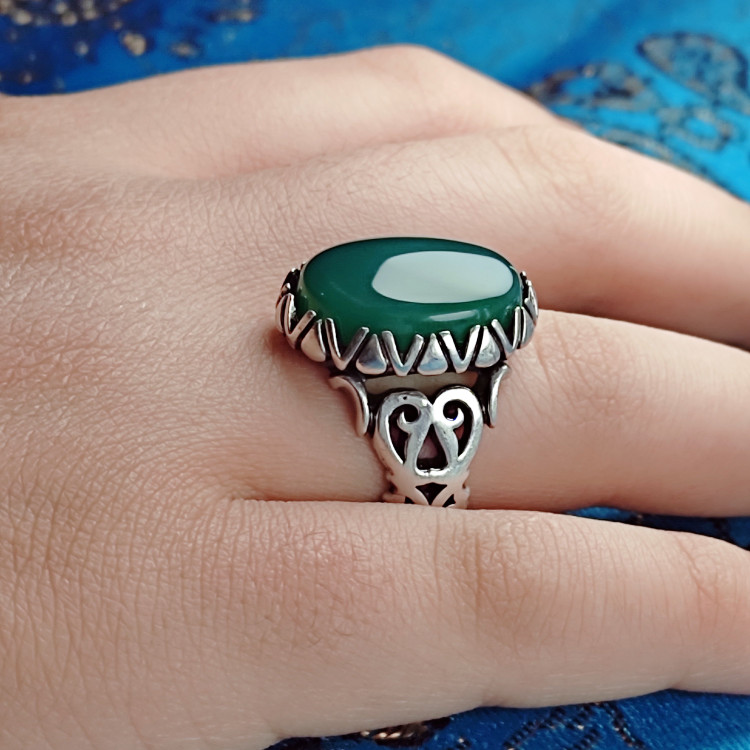 انگشتر مردانه نقره با نگین عقیق سبز