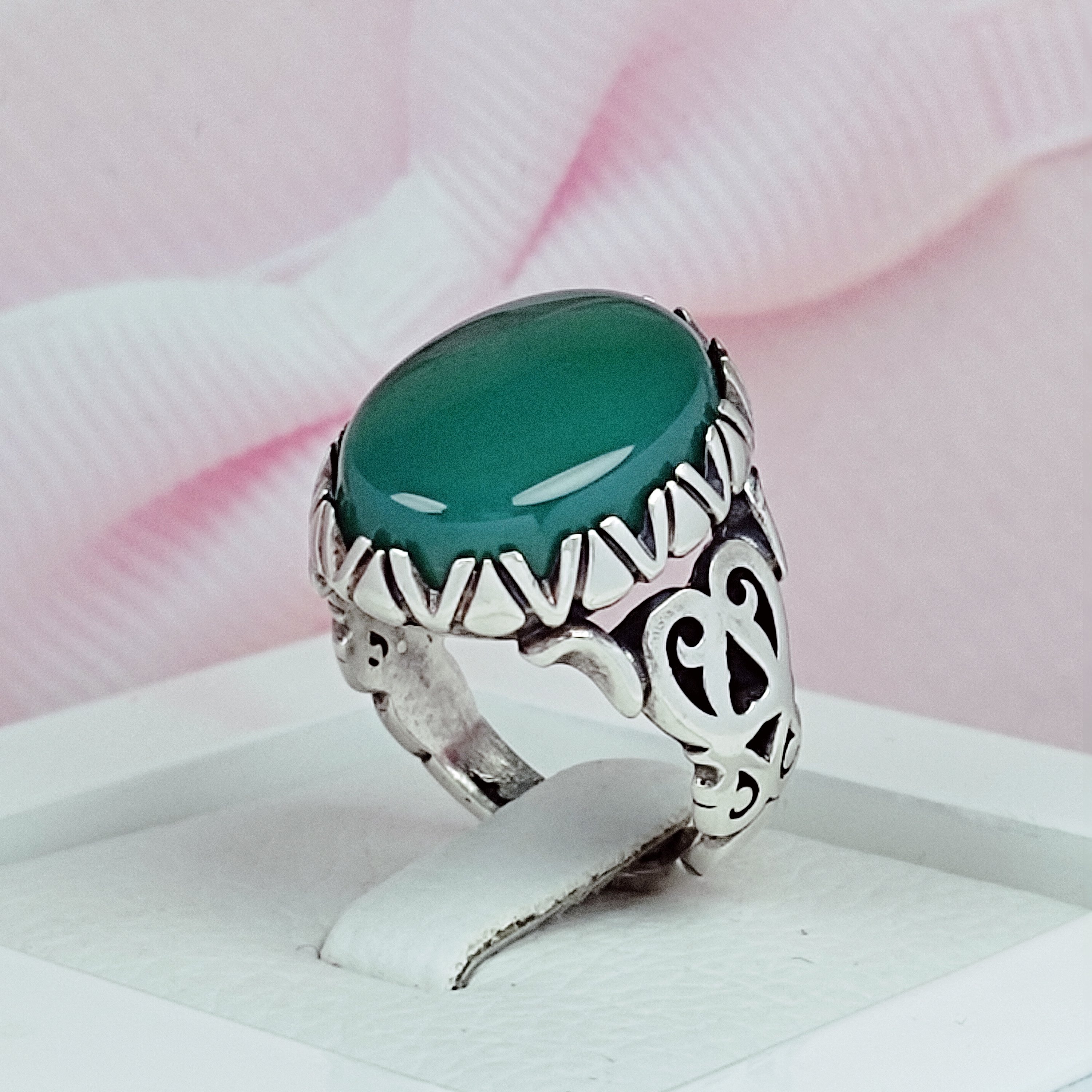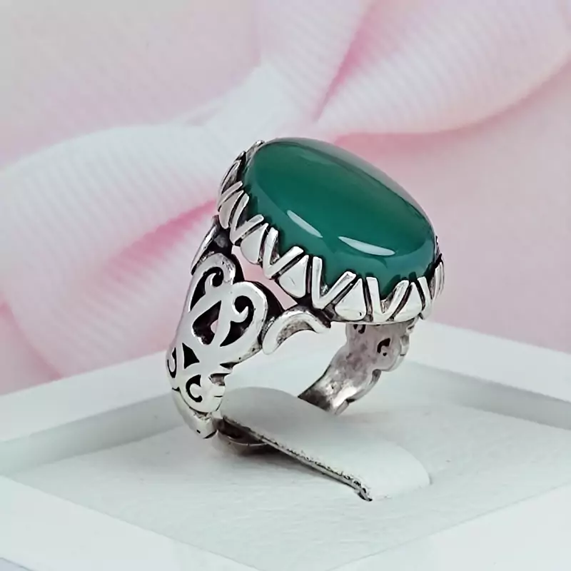 انگشتر مردانه نقره با نگین عقیق سبز