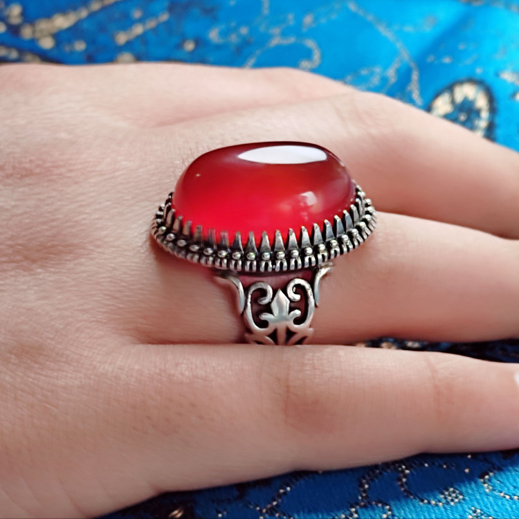 انگشتر مردانه نقره نگین عقیق سرخ خراسان
