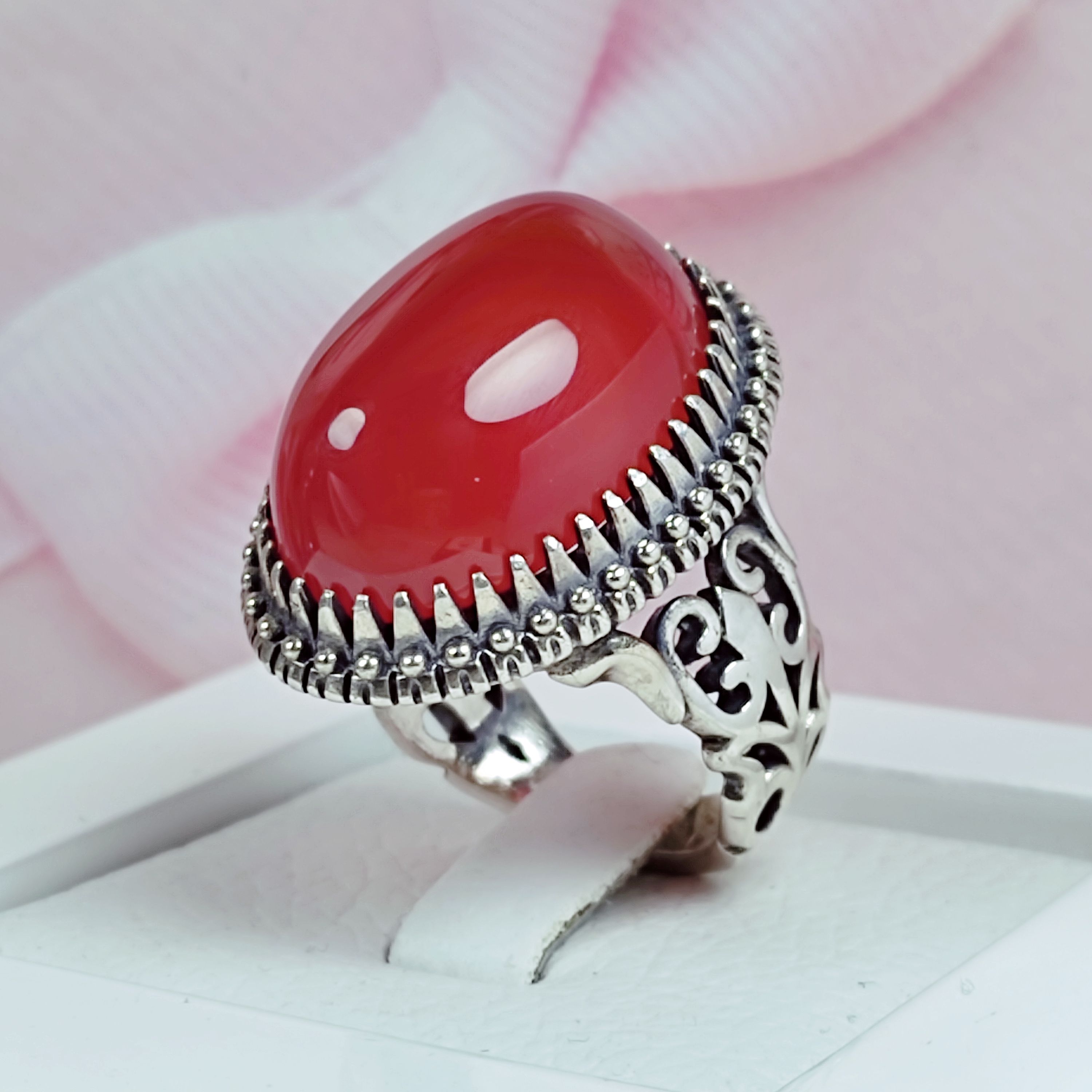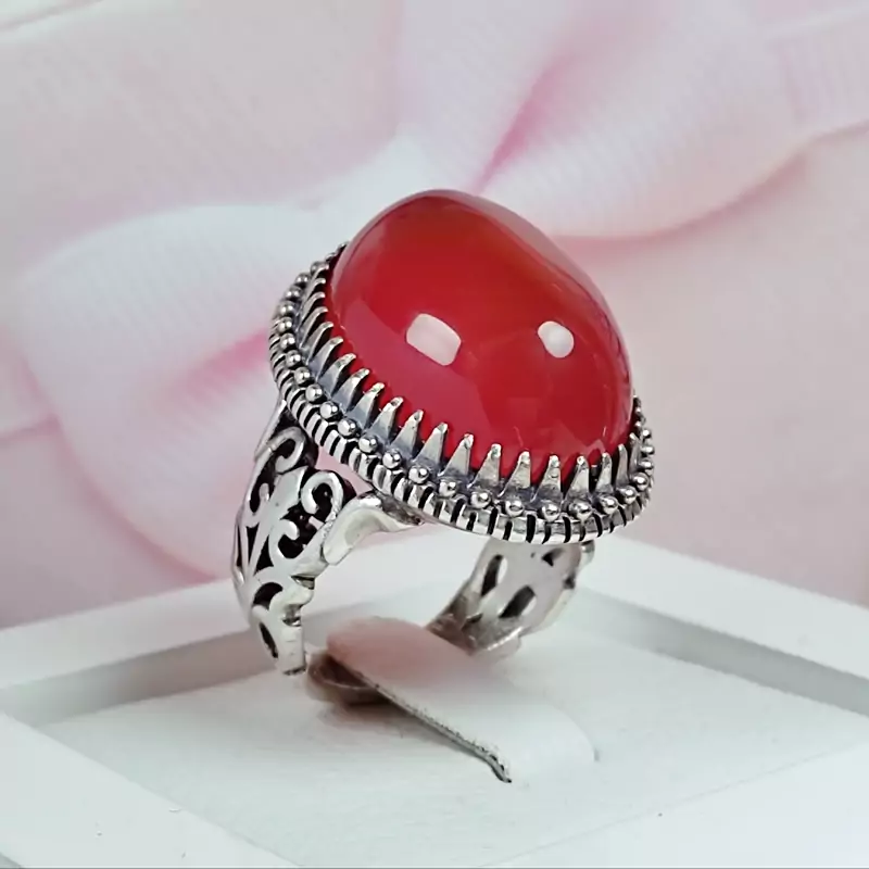 انگشتر مردانه نقره نگین عقیق سرخ خراسان