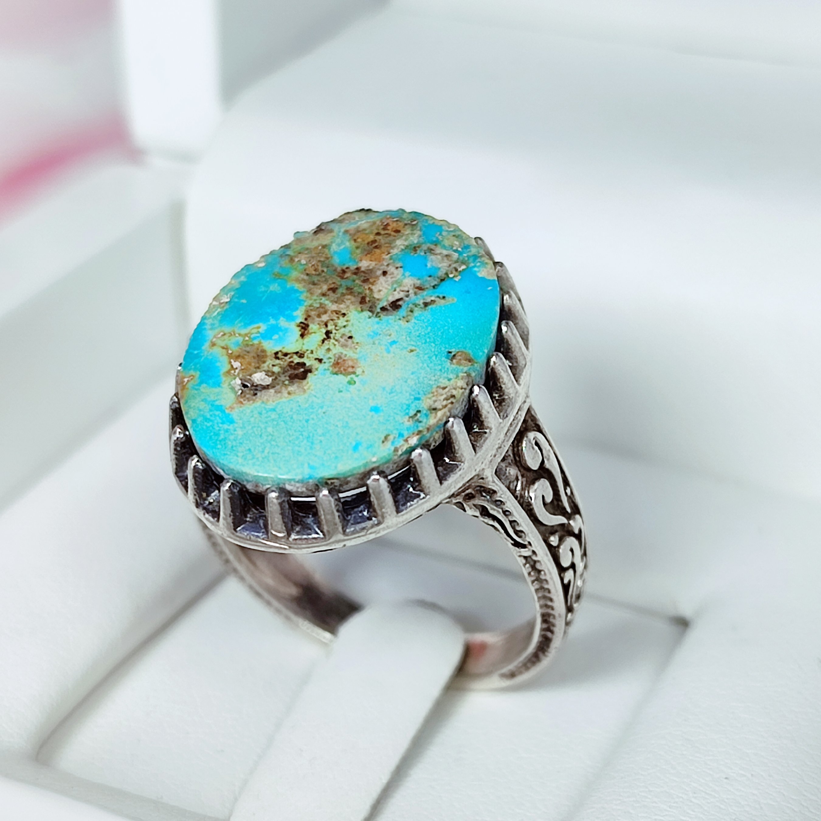 💎 سفارش مجدد با فیروزه مشابه 💎 رکاب طرح قلم 💎 عیار 925 💎 وزن 12 فیروزه نیشابوری اصلی و معدنی