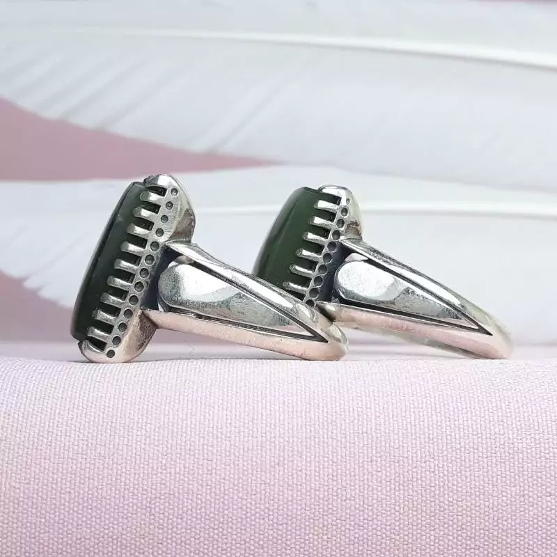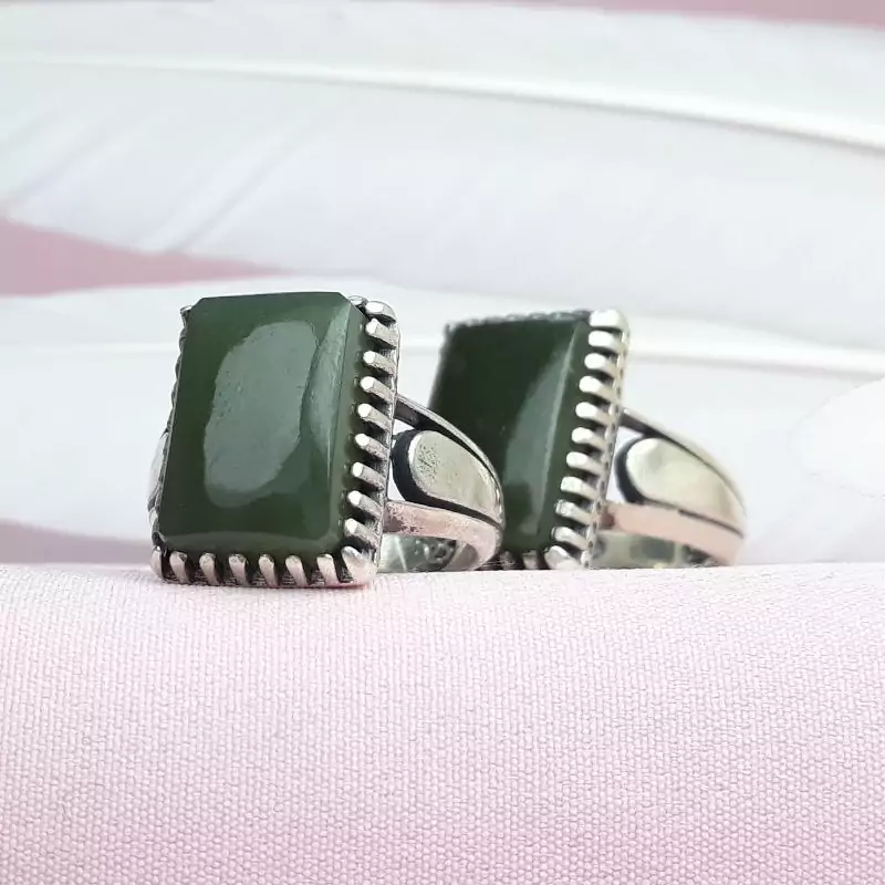 🔹ست زنانه مردانه یشم 🔹رکاب چهارگوش 🔹حکاکی پذیرفته میشود 🔹رکاب ماشینی 🔹چنگ دار 🔹مدل پا اردکی 🔹وزن 21 گرم