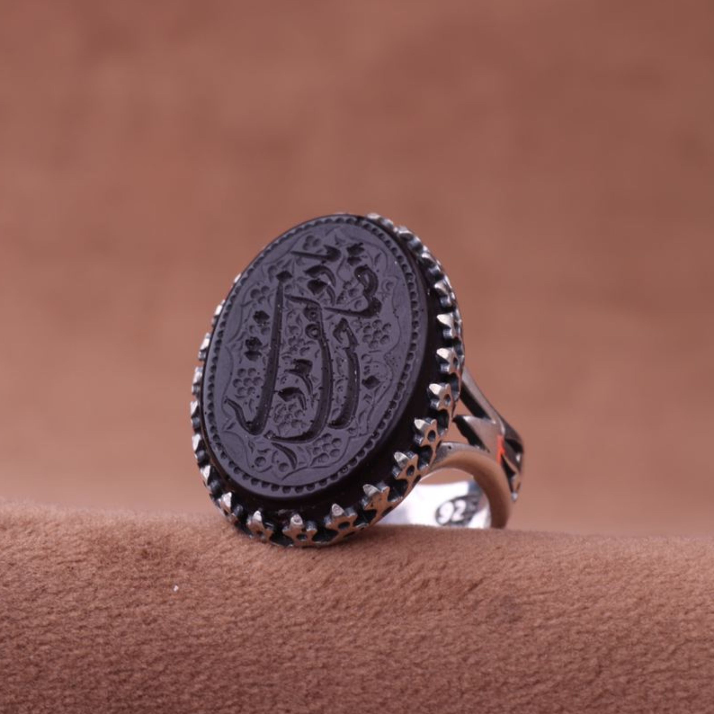 انگشتر عقیق مشکی نقش یاصاحب ذوالفقار مدد اصل ( انگشتر مردانه )