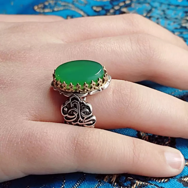 انگشتر مردانه عقیق سبز رکاب علی بن موسی الرضا اصلی و معدنی