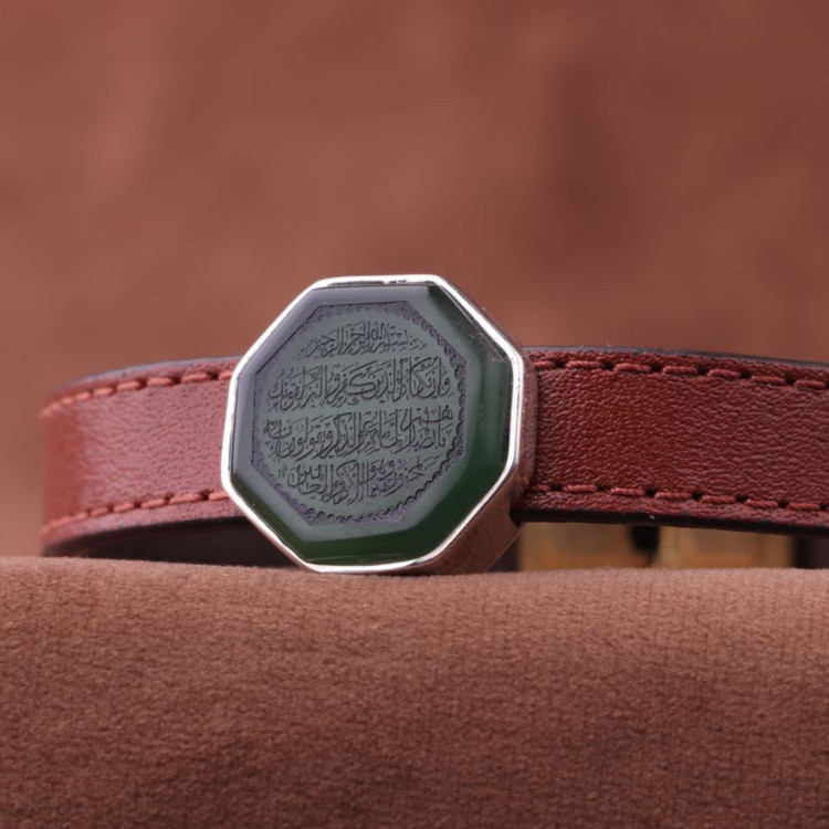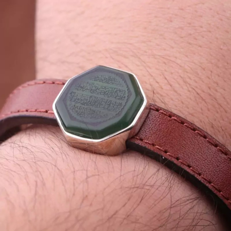 دستبند چرم طبیعی یشم نقش و ان یکاد مردانه اصل ( انگشتر مردانه )