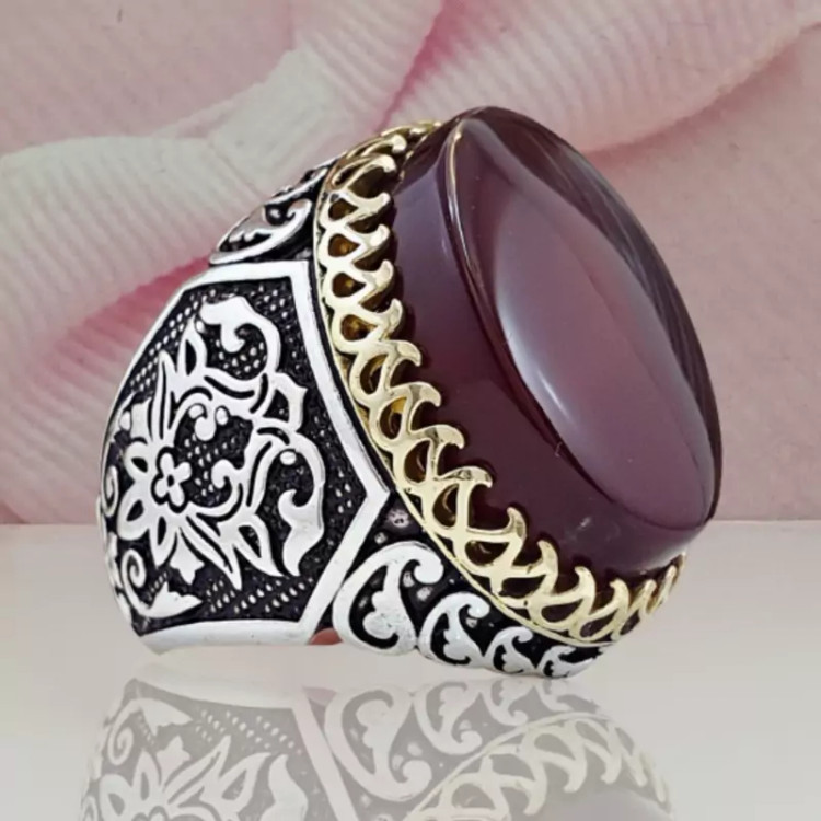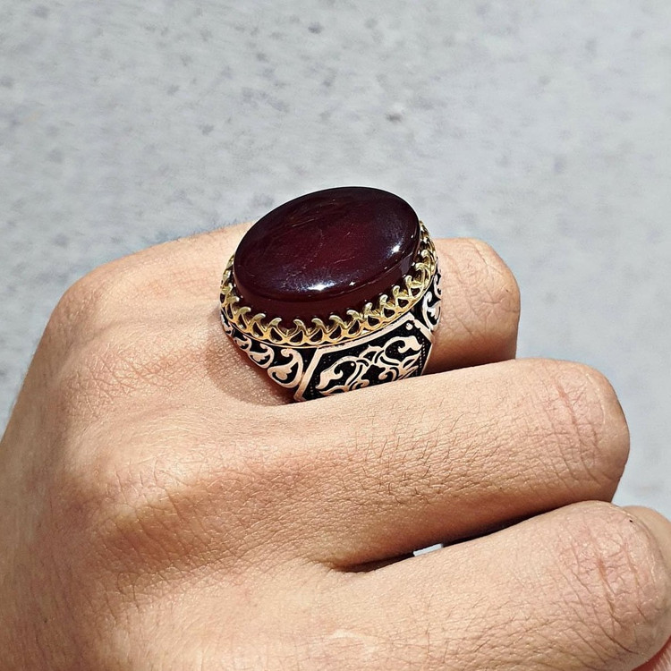 انگشتر مردانه عقیق کبدی اصلی و معدنی
