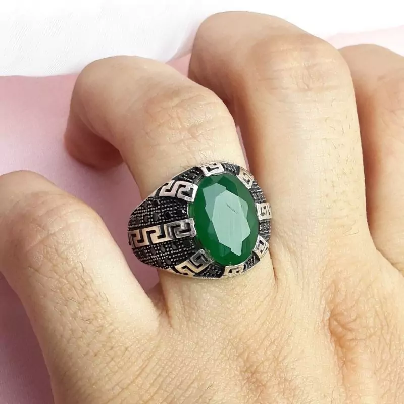 🔴 انگشتر مردانه جید تراش جواهر