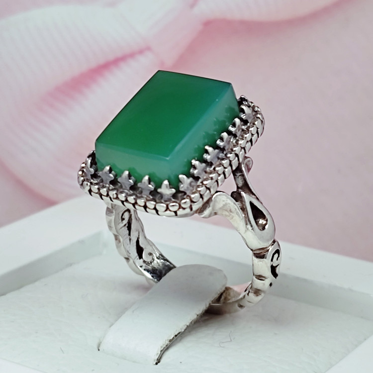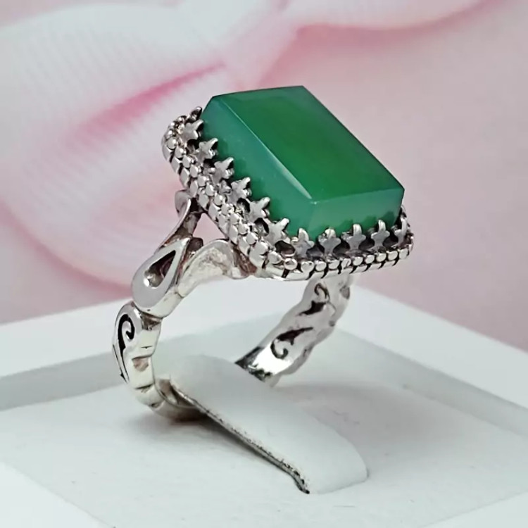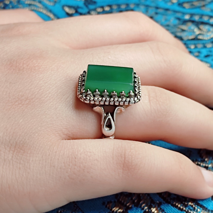 انگشتر مردانه عقیق سبز چهارگوش طرح رهبری