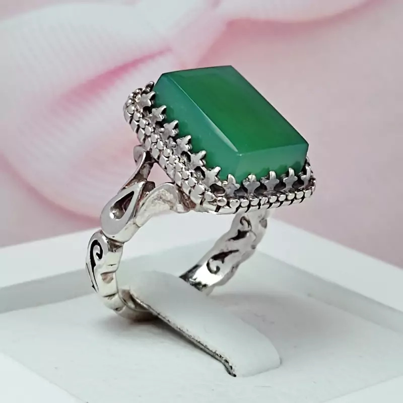 انگشتر مردانه عقیق سبز چهارگوش طرح رهبری