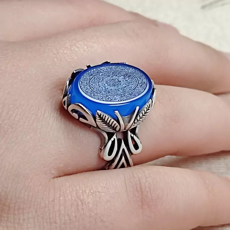 انگشتر مردانه عقیق آبی اصل طرح شاپرک