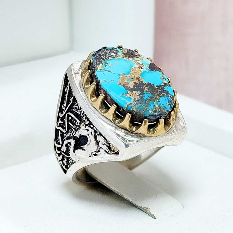 انگشتر مردانه فیروزه نیشابوری اصل و طبیعی تک