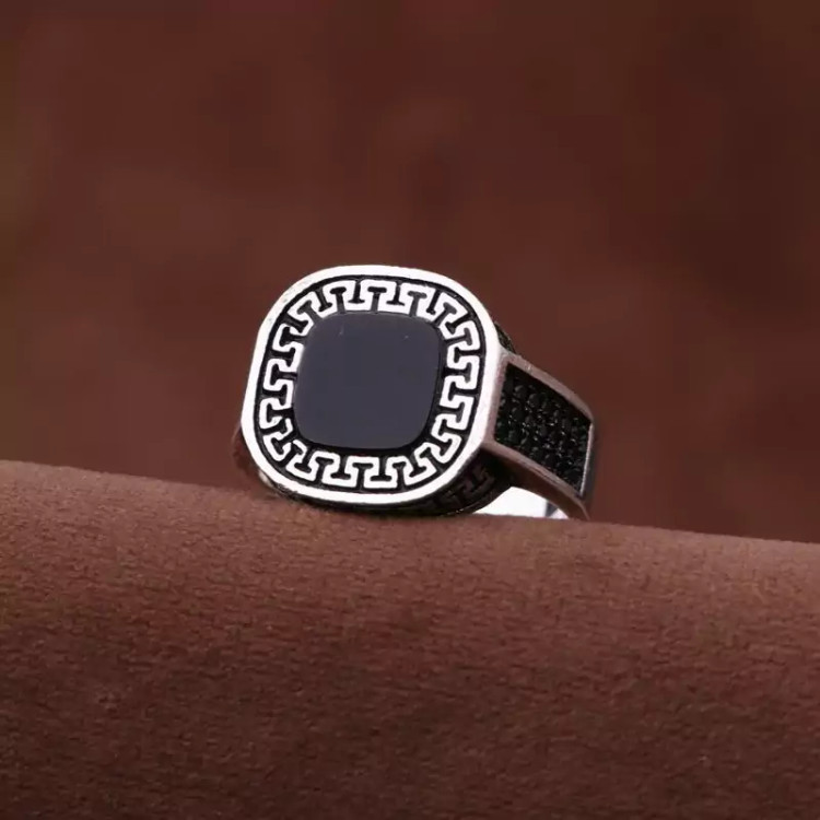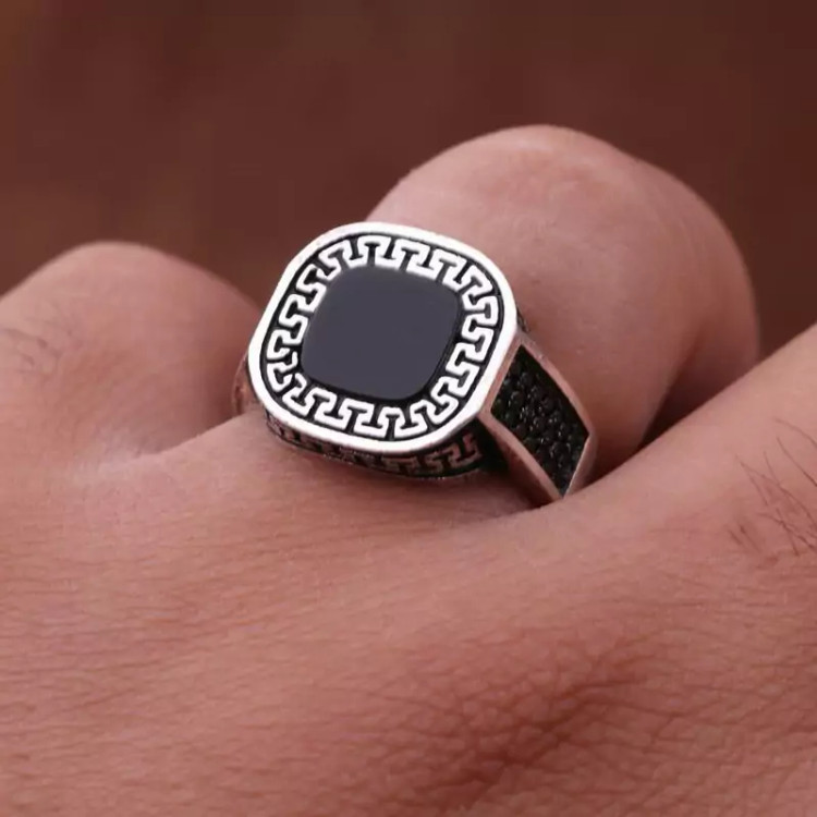 انگشتر عقیق ترک مشکی رکاب طراحی ورساچه اصل ( انگشتر مردانه )