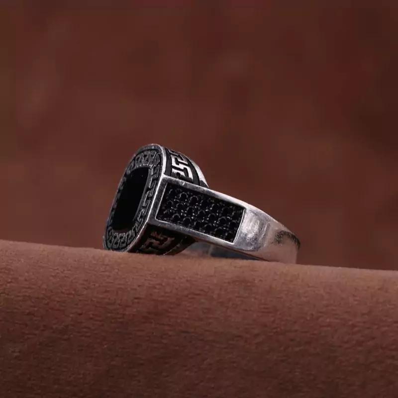 انگشتر عقیق ترک مشکی رکاب طراحی ورساچه اصل ( انگشتر مردانه )