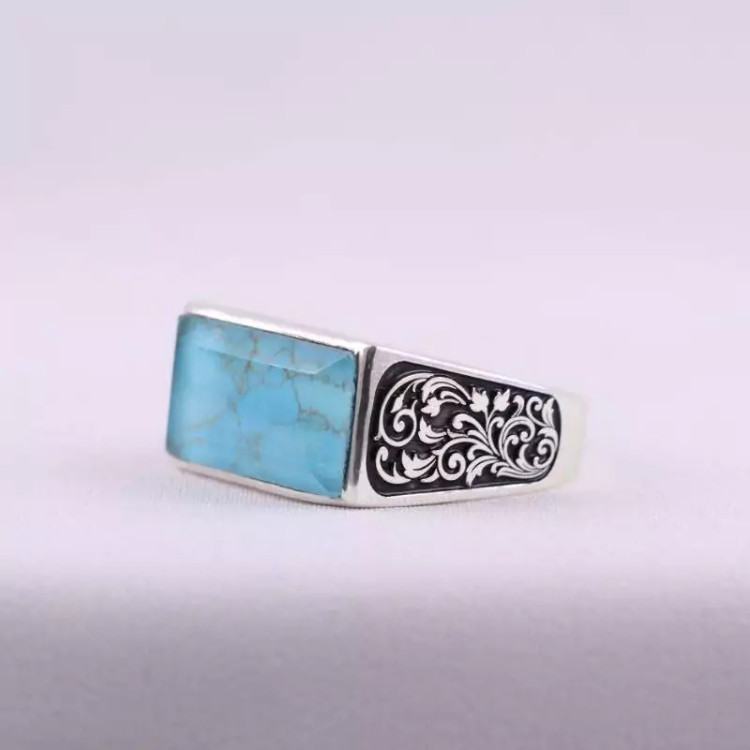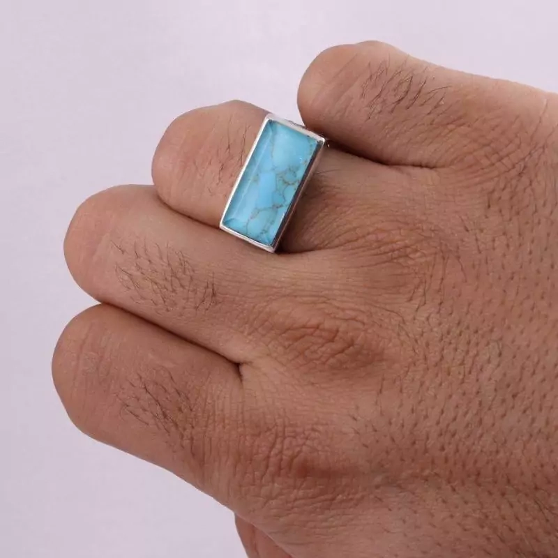 انگشتر نقره مردانه ترکیب فیروزه و در نجف
