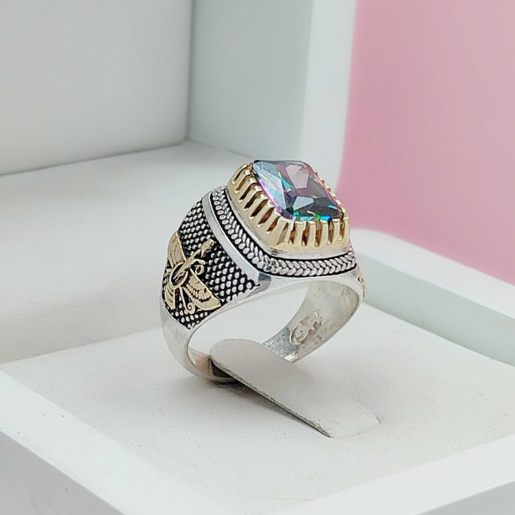 انگشتر مردانه زیبا و نگین کوارتز هفت رنگ اصل