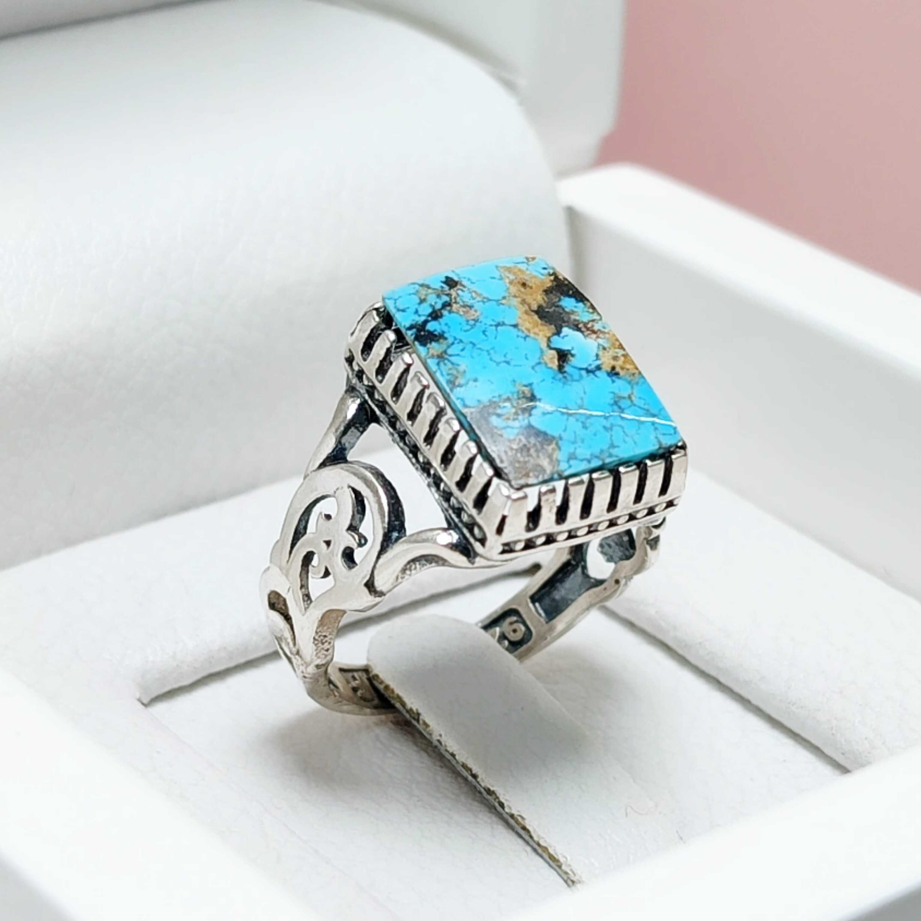 انگشتر مردانه با نگین فیروزه نیشابوری تک و خاص پسند