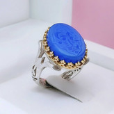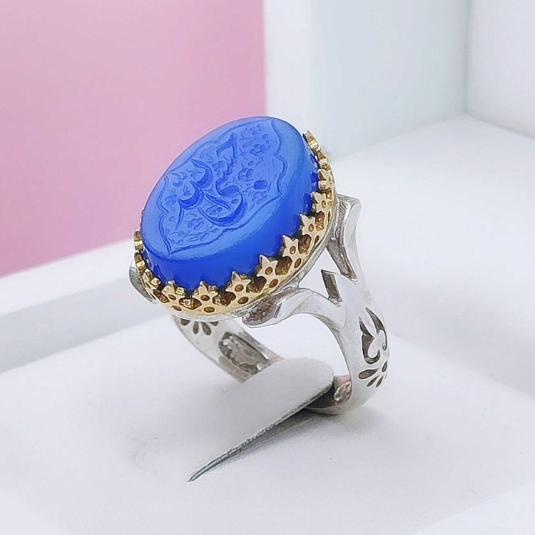 انگشتر مردانه زیبا عقیق آبی اصلی با حکاکی حسبی الله