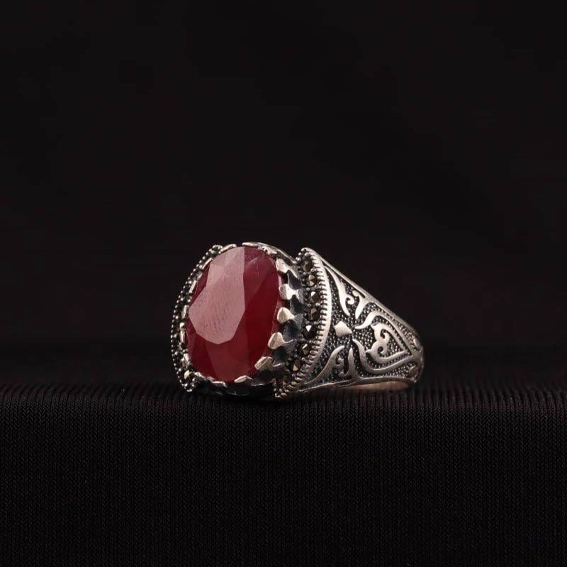 رکاب انگشتر نقره 925 عیار می باشد و نگین یاقوت سرخ آفریقایی از بهترین معادن اکتشاف شده است.