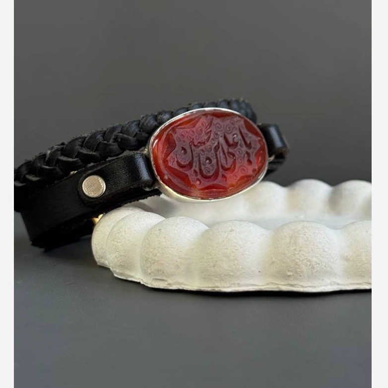 دستبند عقیق سرخ رکاب نقره دست ساز چرم طبیعی گاوی بغل بافت عیار نقره 925 قبل از ثبت سفارش موجودی رو بپرسید.