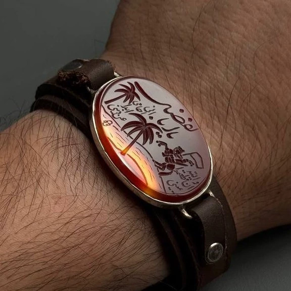 دستبند مردانه چرم و عقیق و نقره اصل