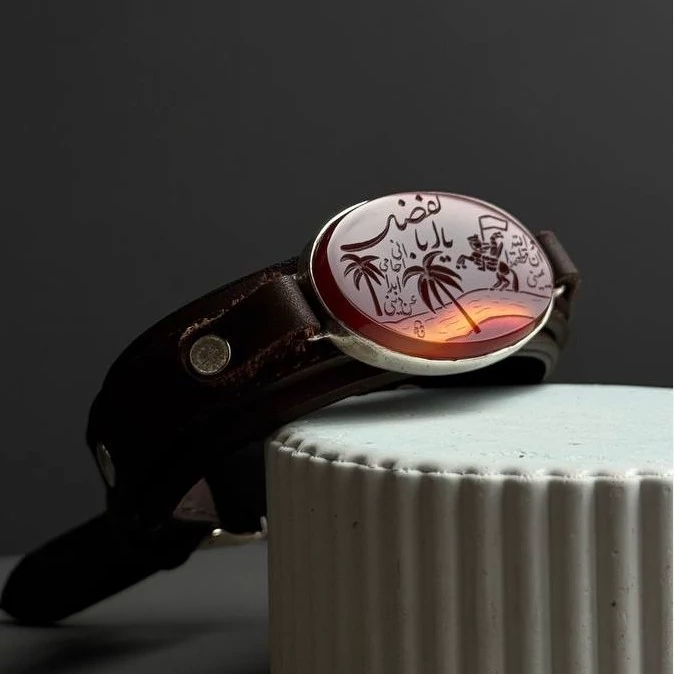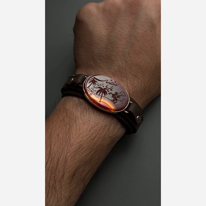 دستبند مردانه چرم و عقیق و نقره اصل