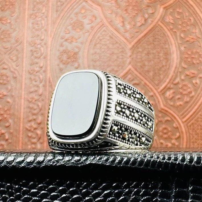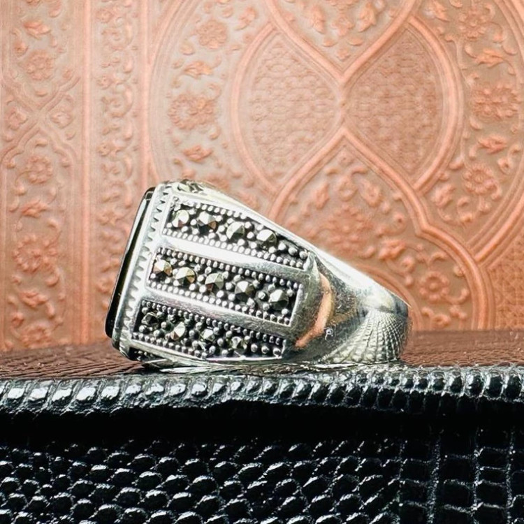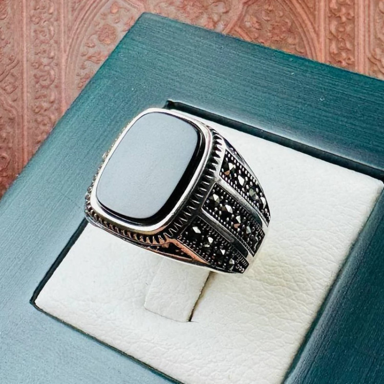 انگشتر نقره مردانه اسپرت عقیق اصل ترک