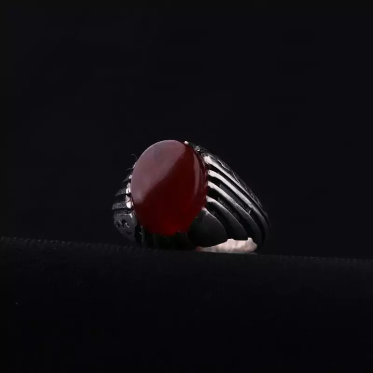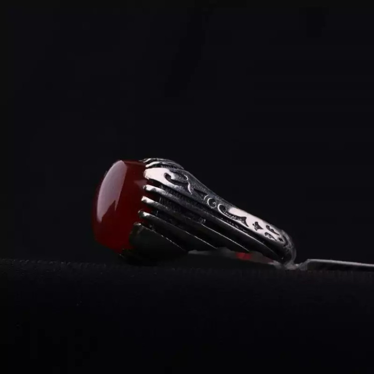 انگشتر عقیق یمنی زیبای خوشرنگ اصل ( انگشتر مردانه )