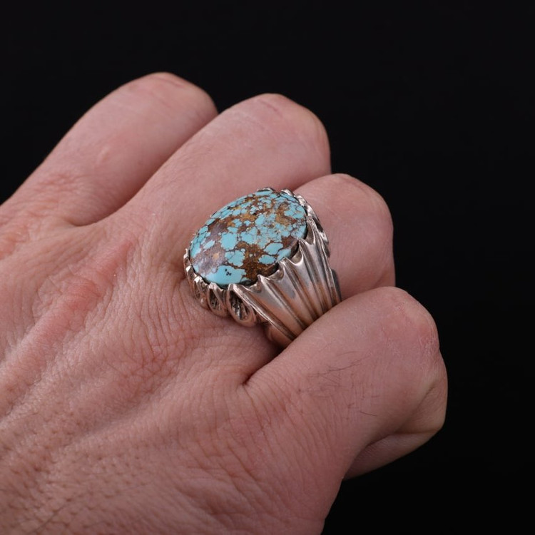 انگشتر نقره مردانه فیروزه نیشابوری معدنی دستساز اصل ( انگشتر فیروزه )