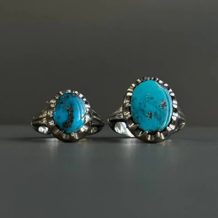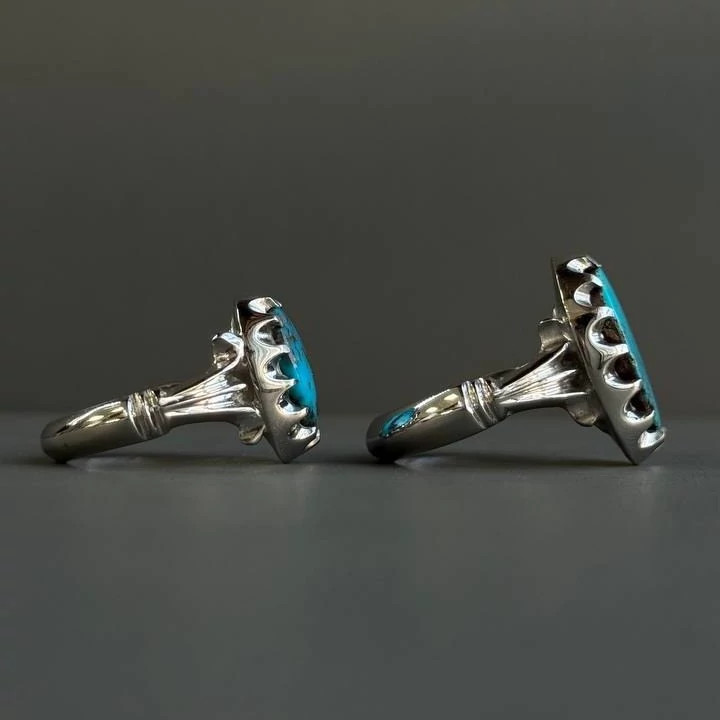 انگشتر مردانه و زنانه نقره ست دستساز فیروزه نیشابوری