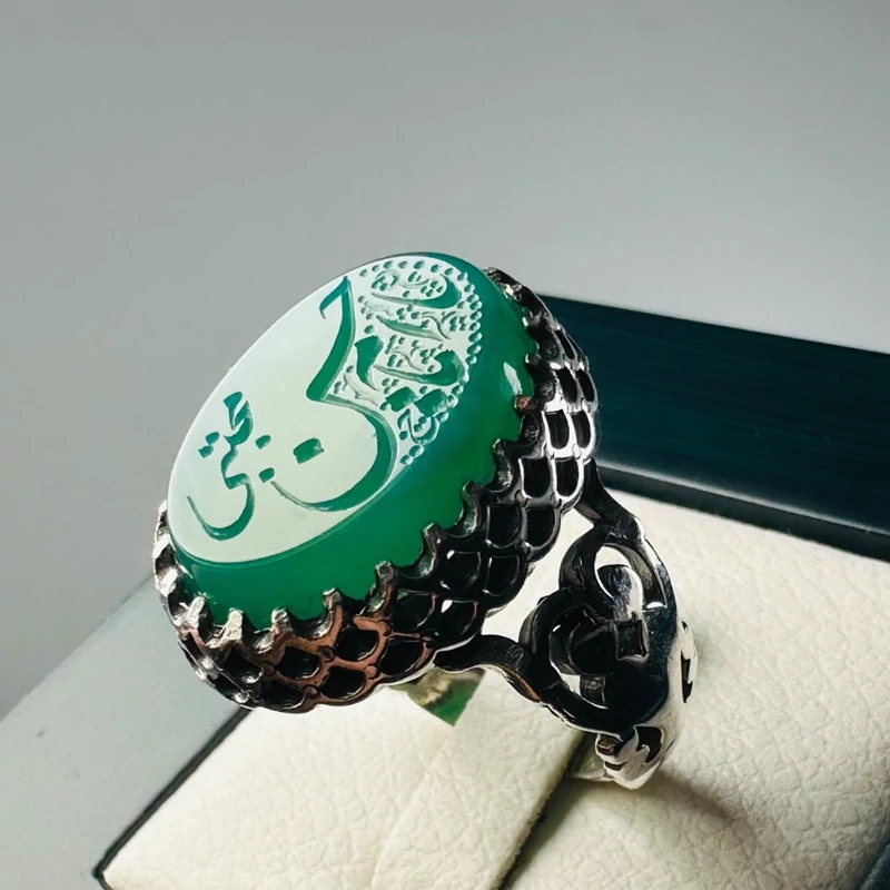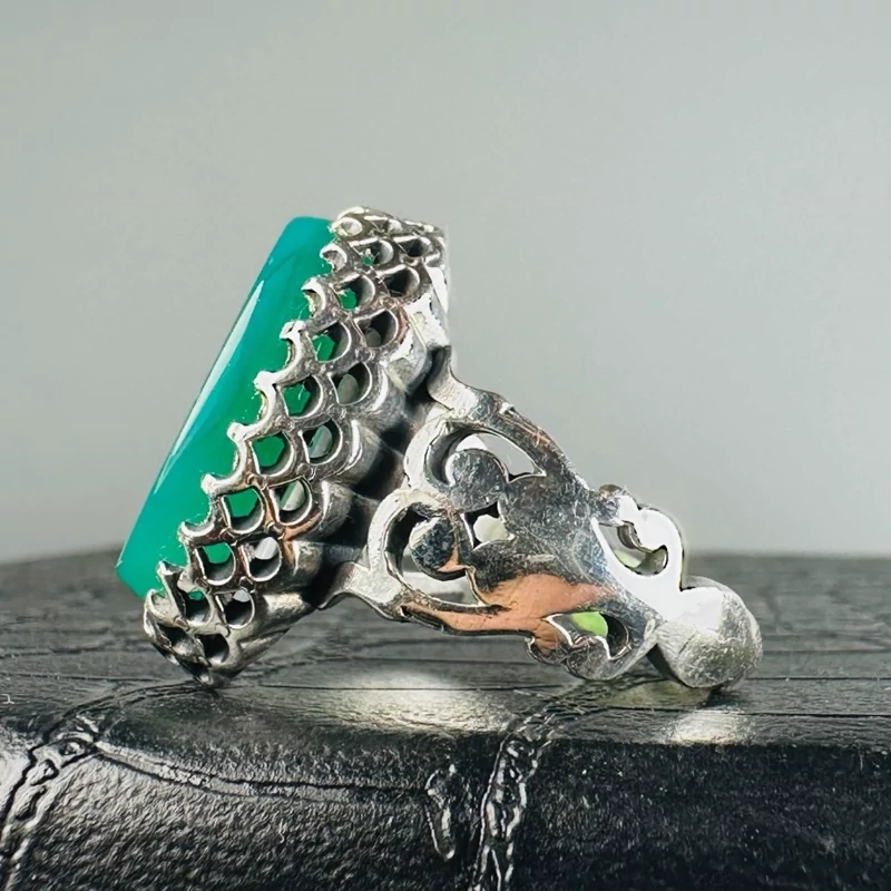 انگشتر مردانه نقره عقیق سبز اصل