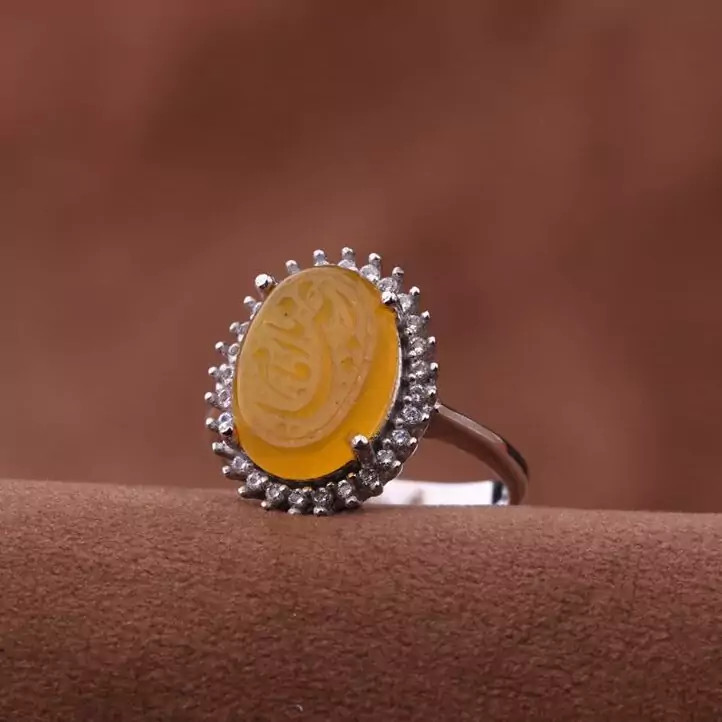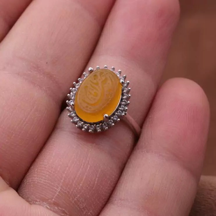 انگشتر عقیق زرد نقش یارضا زنانه اصل ( انگشتر زنانه )