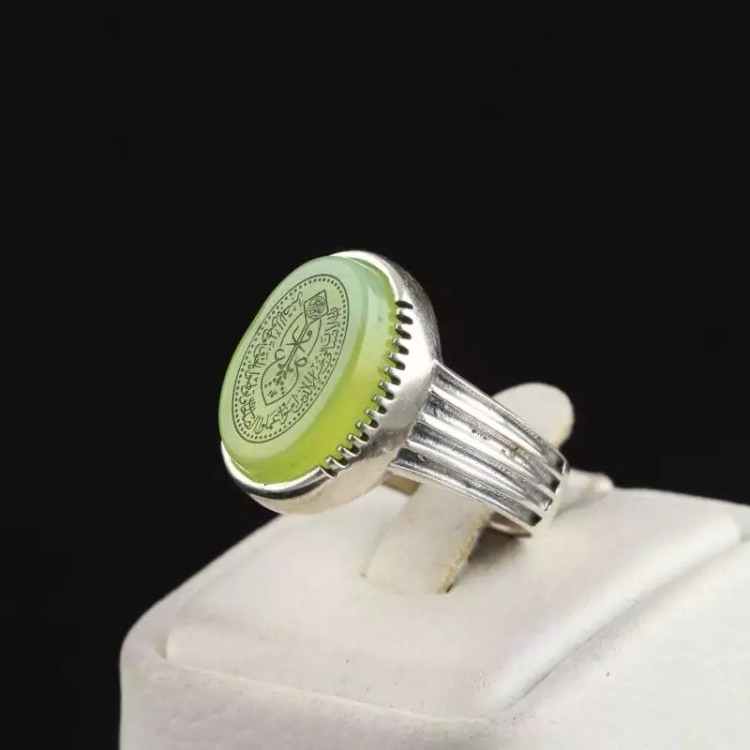 انگشتر نقره مردانه عقیق سبز اصل خطی نقش سوره والعصر