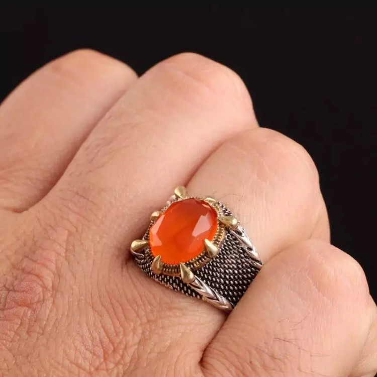 نگین این انگشتر اسپرت عقیق یمنی اصل و خوش رنگ می باشد.