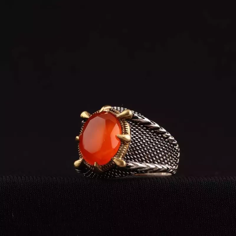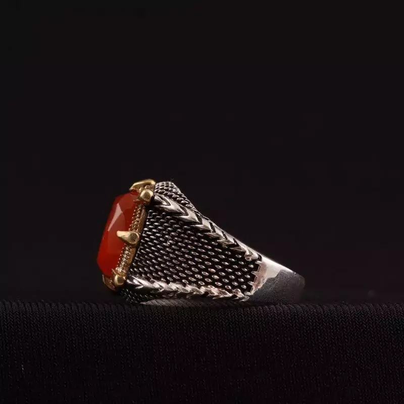 نگین این انگشتر اسپرت عقیق یمنی اصل و خوش رنگ می باشد.