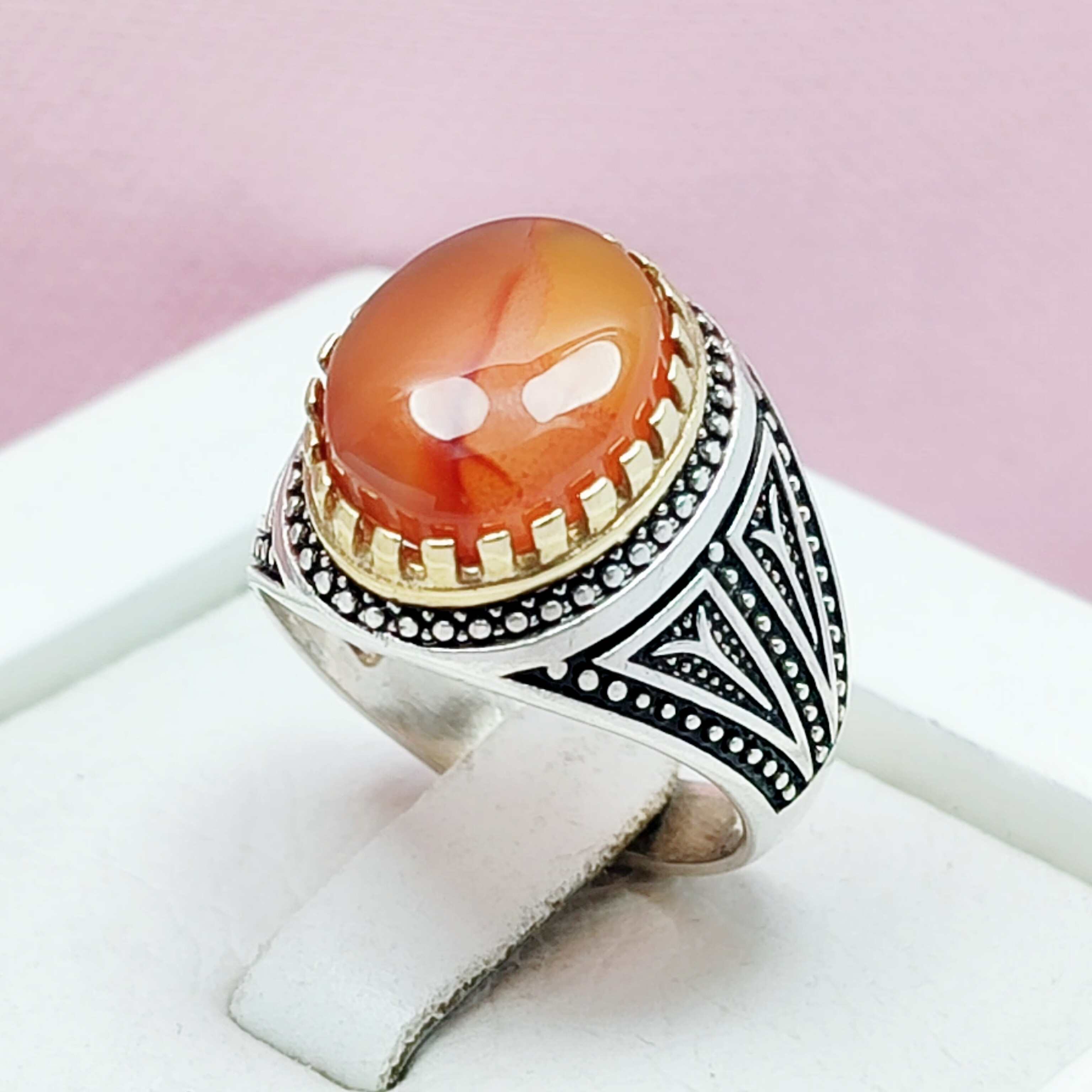انگشتر مردانه نقره عقیق پرتقالی یمنی