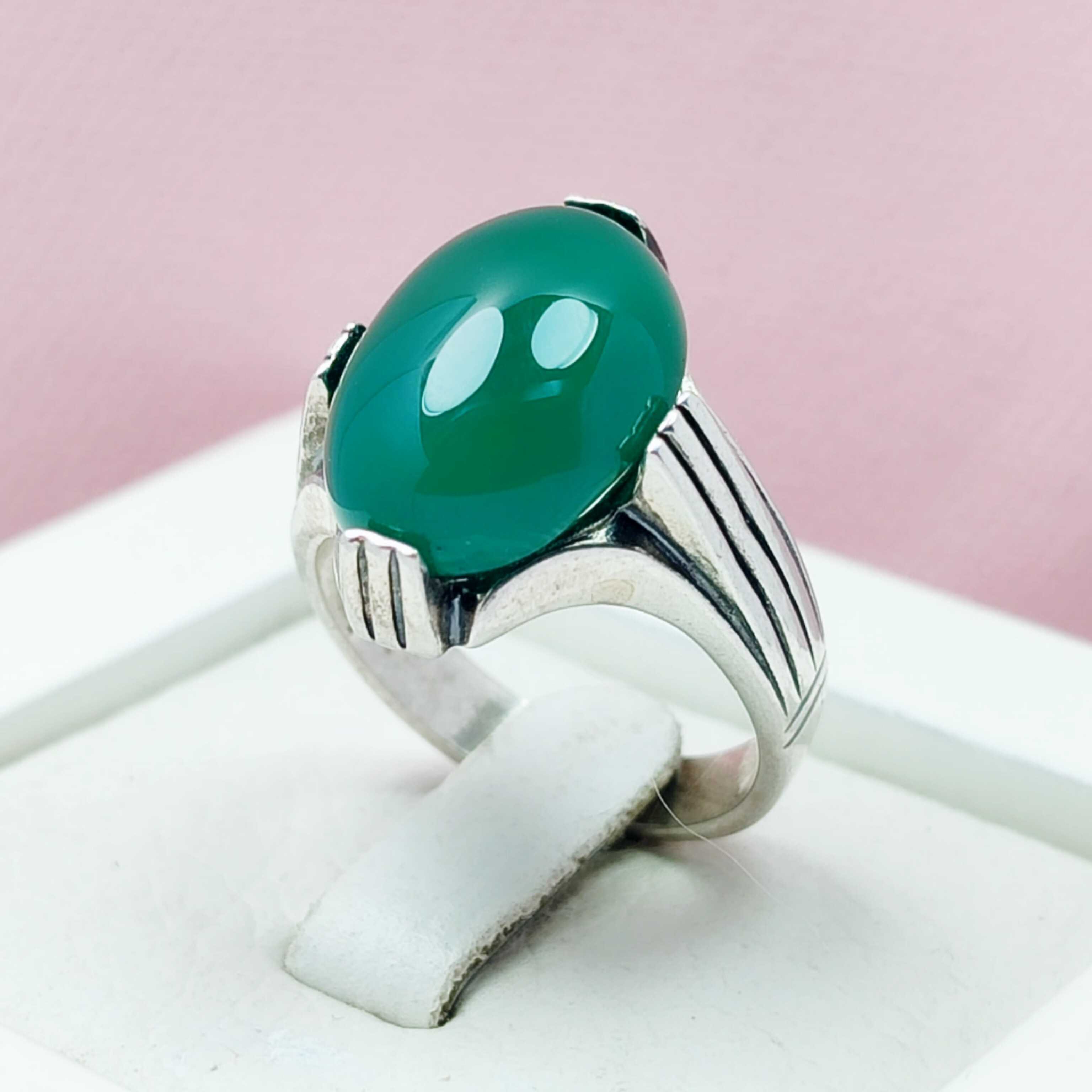 انگشتر مردانه نقره عقیق سبز تراش دامله