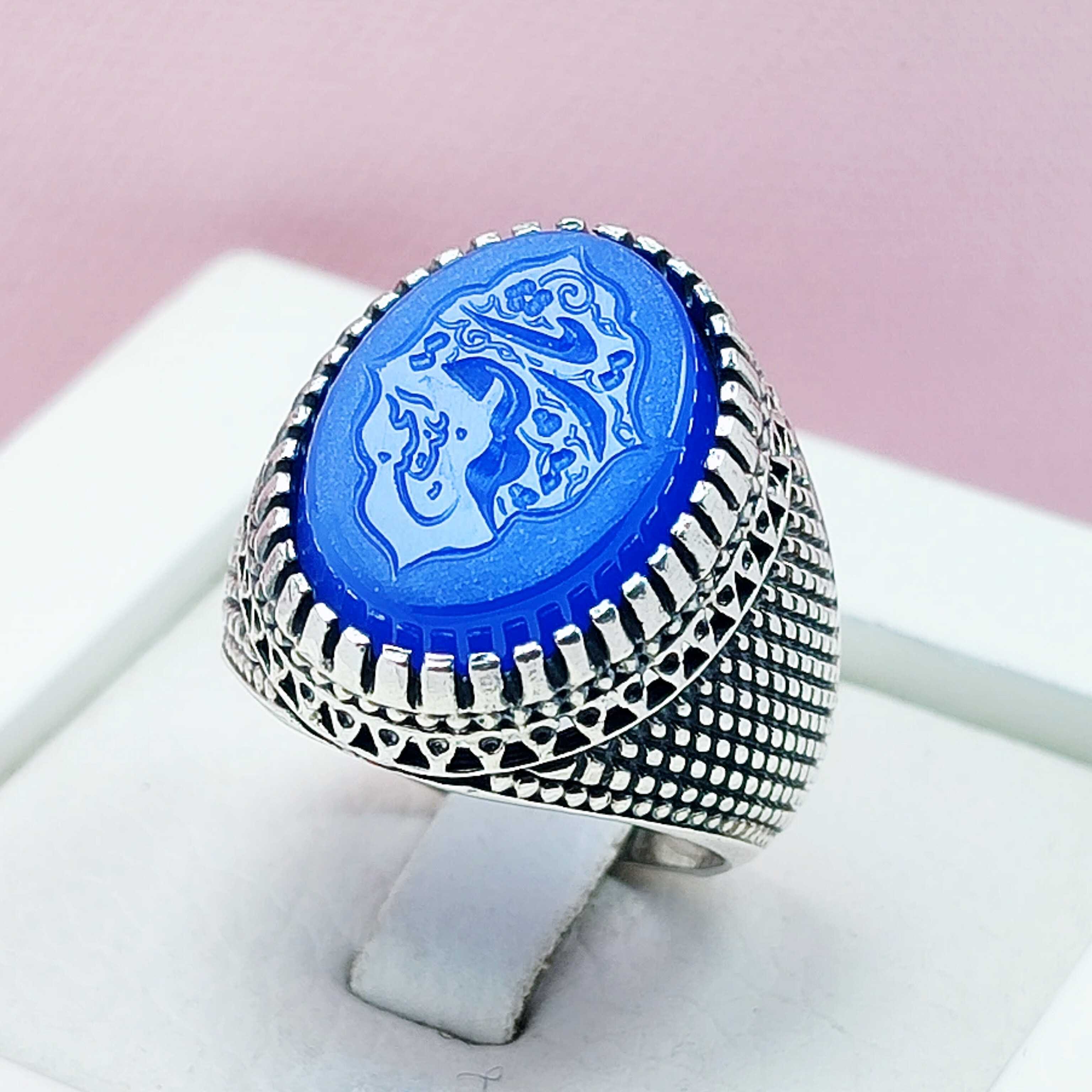 انگشتر یا رقیه مردانه نقره عقیق آبی حصیری