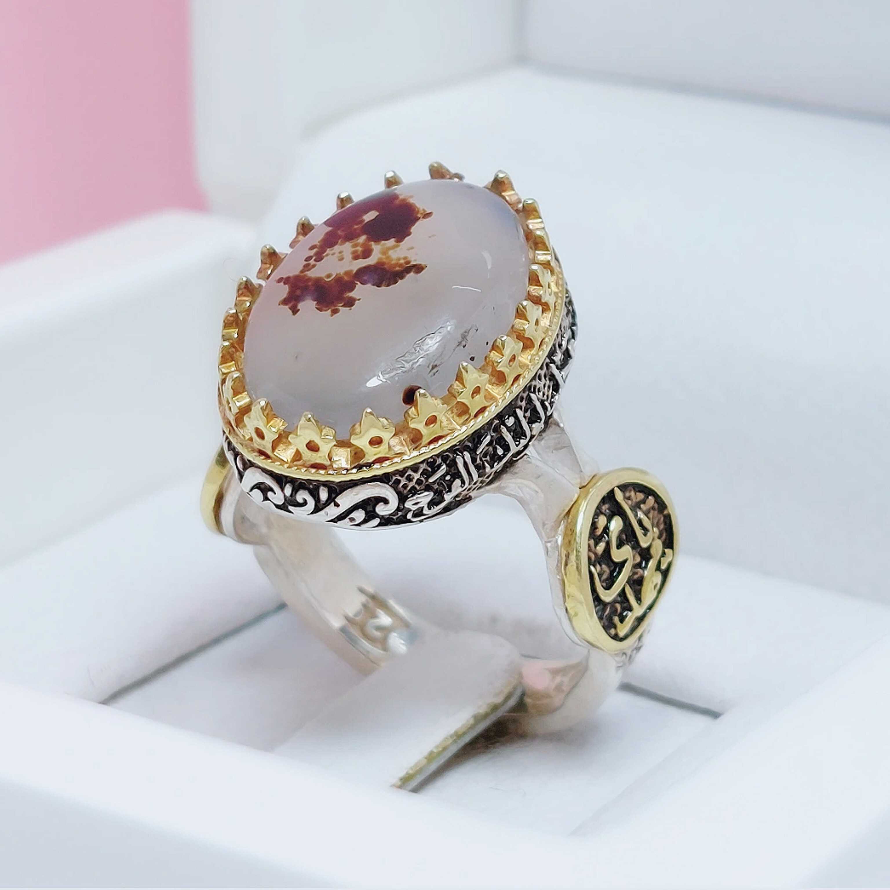انگشتر یا مهدی مردانه نقره عقیق سفید شجری