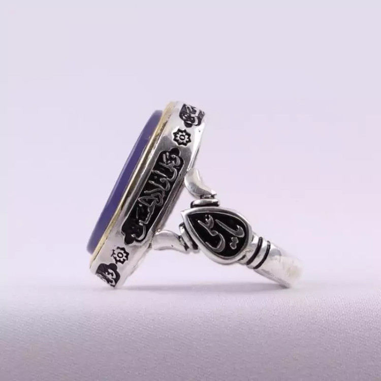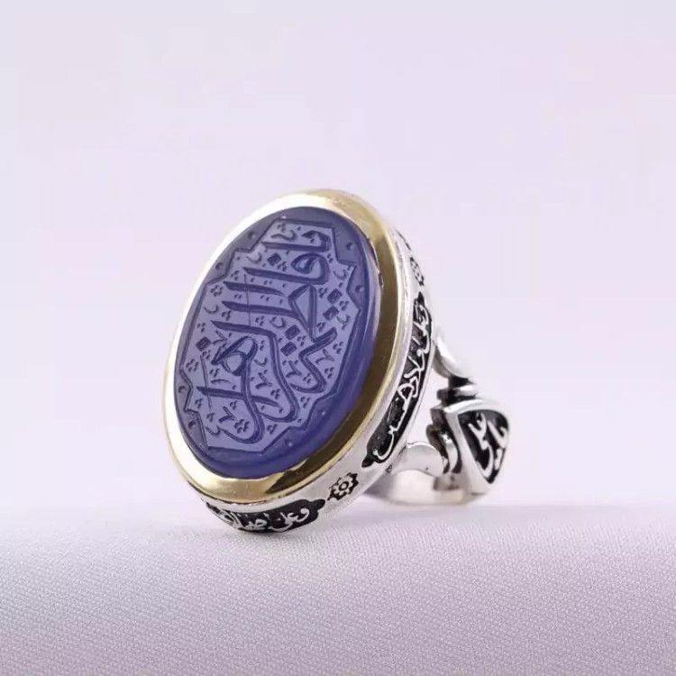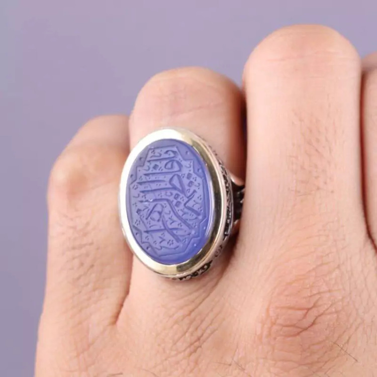 انگشتر عقیق کبود مردانه زیبا سلام زیارت عاشورا رکاب یا علی نقش نگین یا فاطمه الزهرا