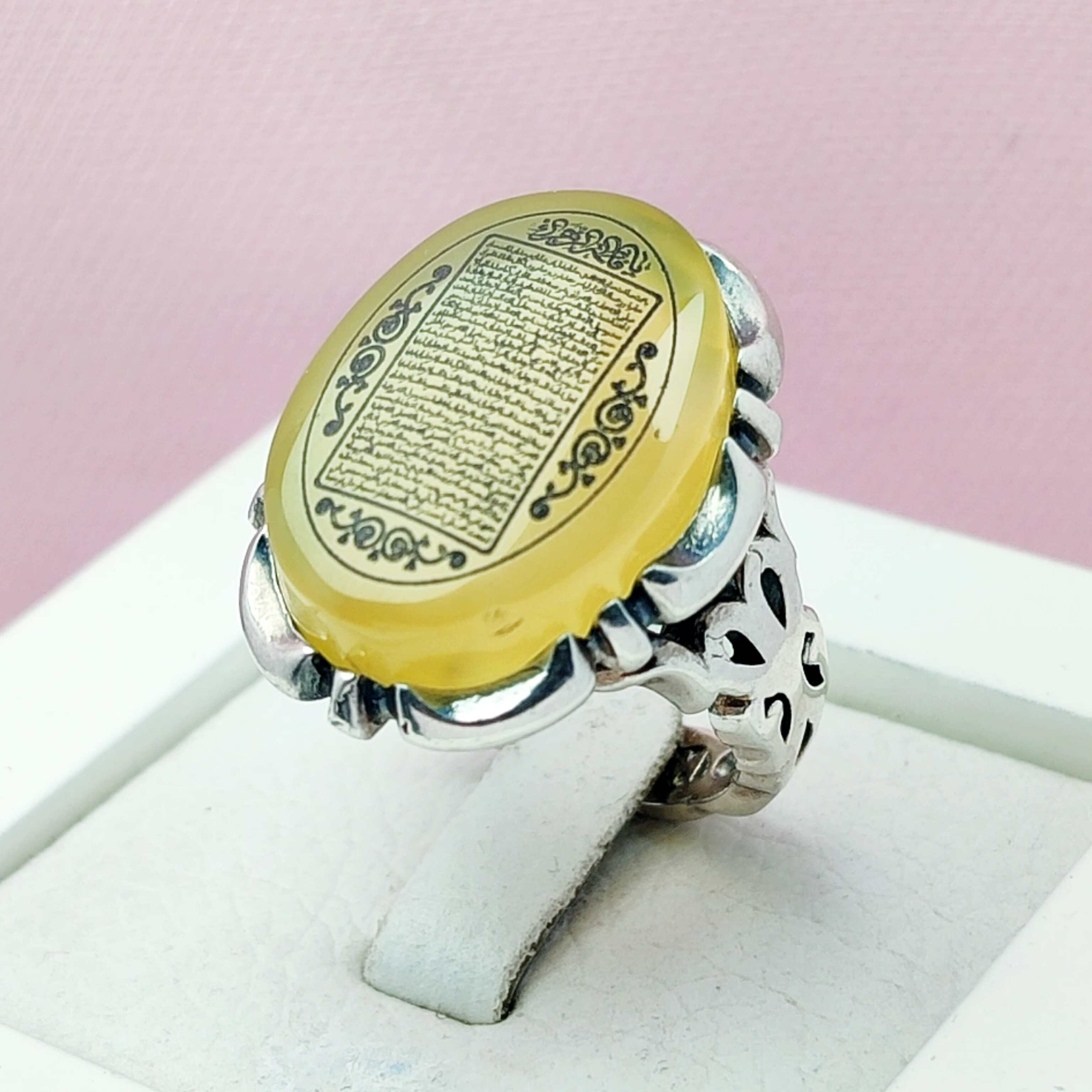 انگشتر عقیق زرد اصلی یمن تراش حکاکی لیزر