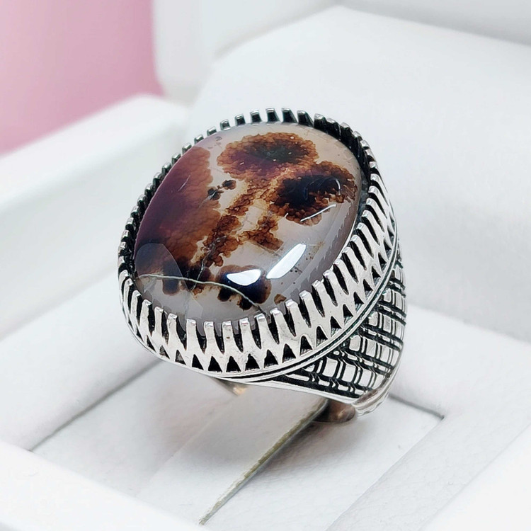 انگشتر شجر طبیعی دو شاخه گل اصلی مردانه نقره مردانه
