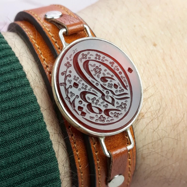 دستبند خطی مردانه عقیق سرخ یا صاحب الزمان (کد 1231)