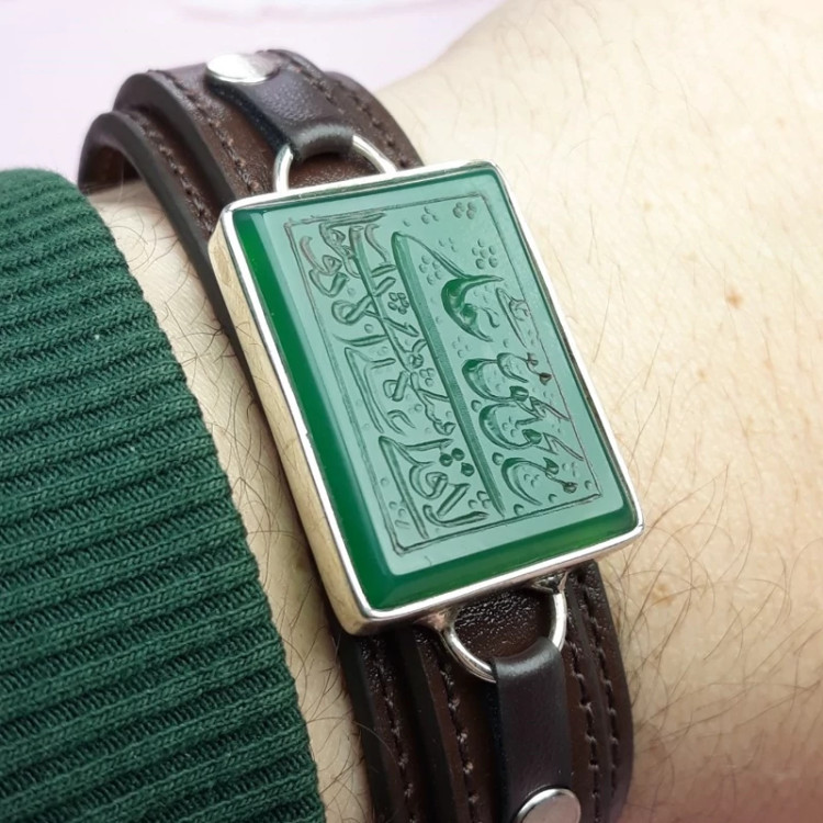 دستبند خطی مردانه عقیق سبز علی مع الحق (کد 1230)