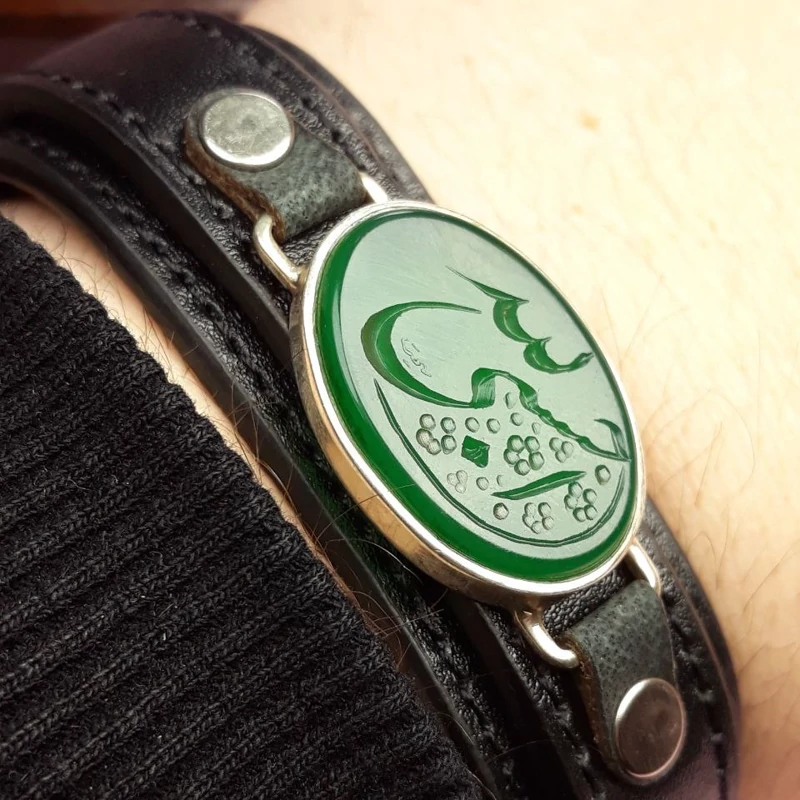 دستبند خطی زنانه عقیق سبز حسبی الله (کد 1230)