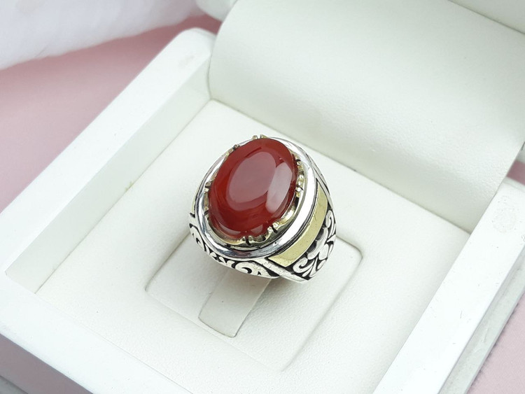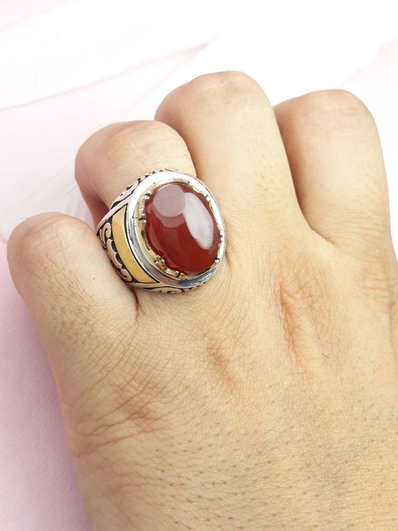 انگشتر مردانه عقیق سرخ یمنی دستساز