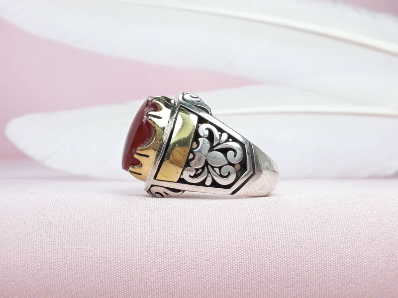 انگشتر مردانه عقیق سرخ یمنی دستساز