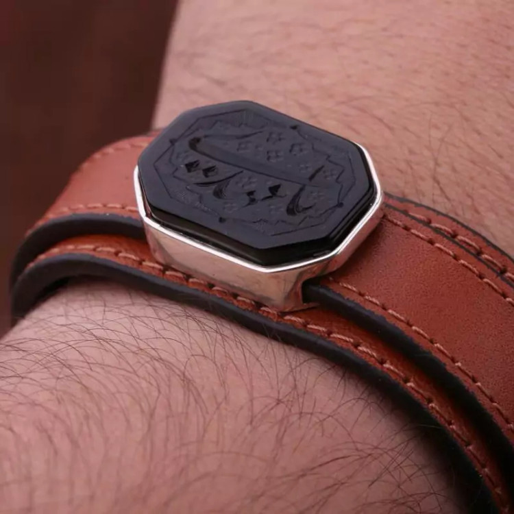دستبند چرم طبیعی نقش یامهدی اصل ( دستبند مردانه )