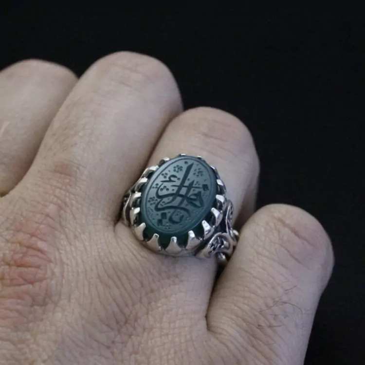 انگشتر عقیق سبز نقش زیبای یازهرا اصل ( انگشتر مردانه )